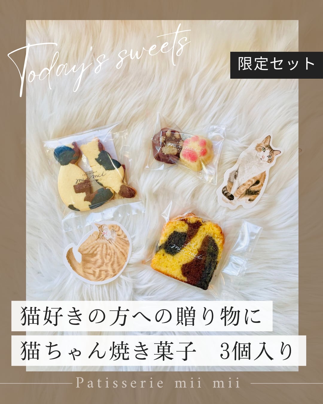 広島県府中市のパティスリーmiimiiから、見ているだけで笑顔になれる猫モチーフの焼き菓子セットをお届けします。